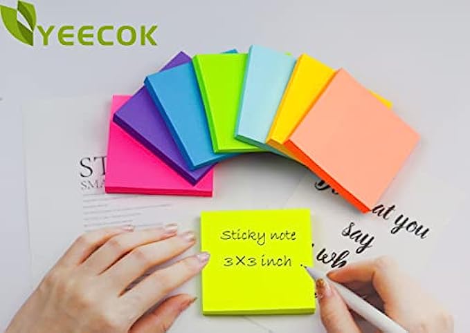 (8 Pack) Sticky Notes 3 x 3 in , 8 Colors Post Self Sticky Notes Pad Its , Bright Post Stickies Colorful Sticky Notes for Office, Home, School, Meeting, 84 Sheets/pad