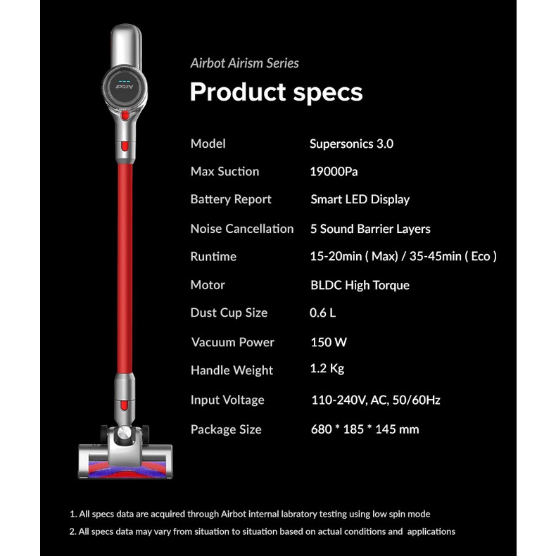 [ Pre-order ] Airbot Supersonics 3.0 Cordless Vacuum Cleaner Handheld Stick Portable Vacuum Dust Mite Killer