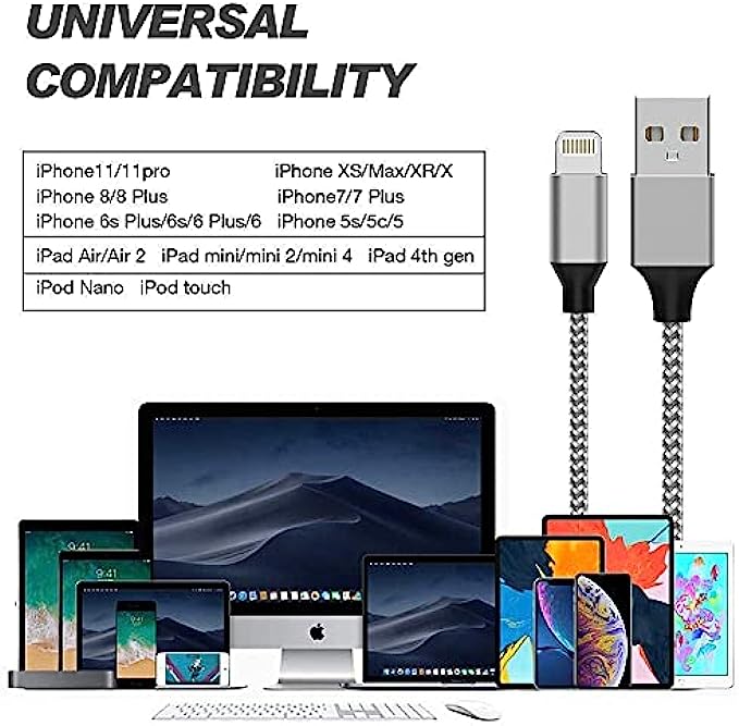 ♠【Perfect Compatibility】: iPhone Charger Cable for iPhone 12Pro Max/12Pro/12/iphone xr /iphone xs / xs max /iphone x/ iphone 10/ iphone 11/iphone11 pro/iphone 11 pro Max, iPhone 8 / 8 Plus, iPhone 7 / 7 Plus, iPhone 6s Plus / 6s / 6 Plus / 6, iPhone 5s / 5c / 5 / SE, iPad / iPod and more.