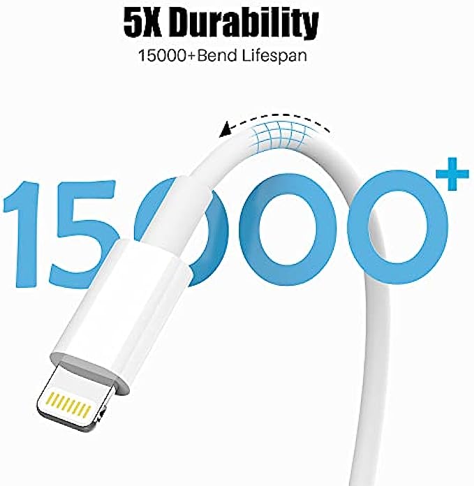 • 【Ultimate Durability】: iPhone Charger Designed and built with premium materials, it has been tested to withstand at least 15000 cycles of 95 degree bend and 10000 plugging and unplugging lifespan which is 12 times stronger than original device cables.