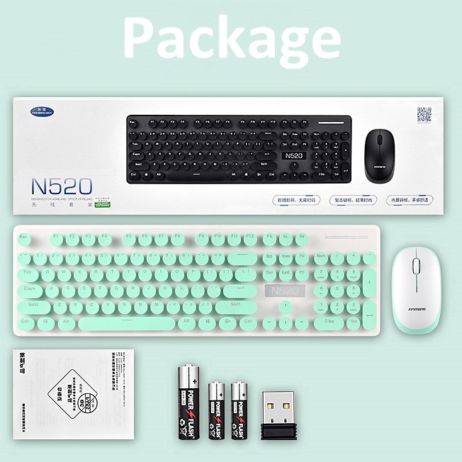 [SG Local] N520 Wireless Keyboard Mouse Combo Vintage Round Keycaps Mechanical Keyboard