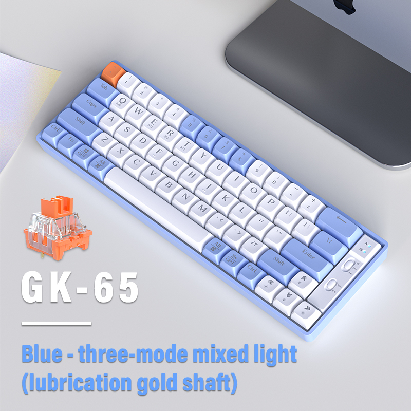 [SG Stock] Wireless Keyboard Hotswappable Mechanical Keyboard With 3Model Bluetooth+USB+2.4G 65 Keys Portable Rechargeable Colorful Lights Keyboard