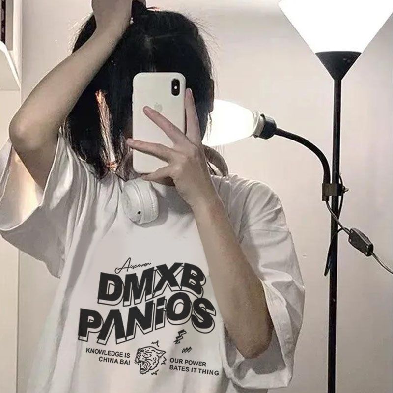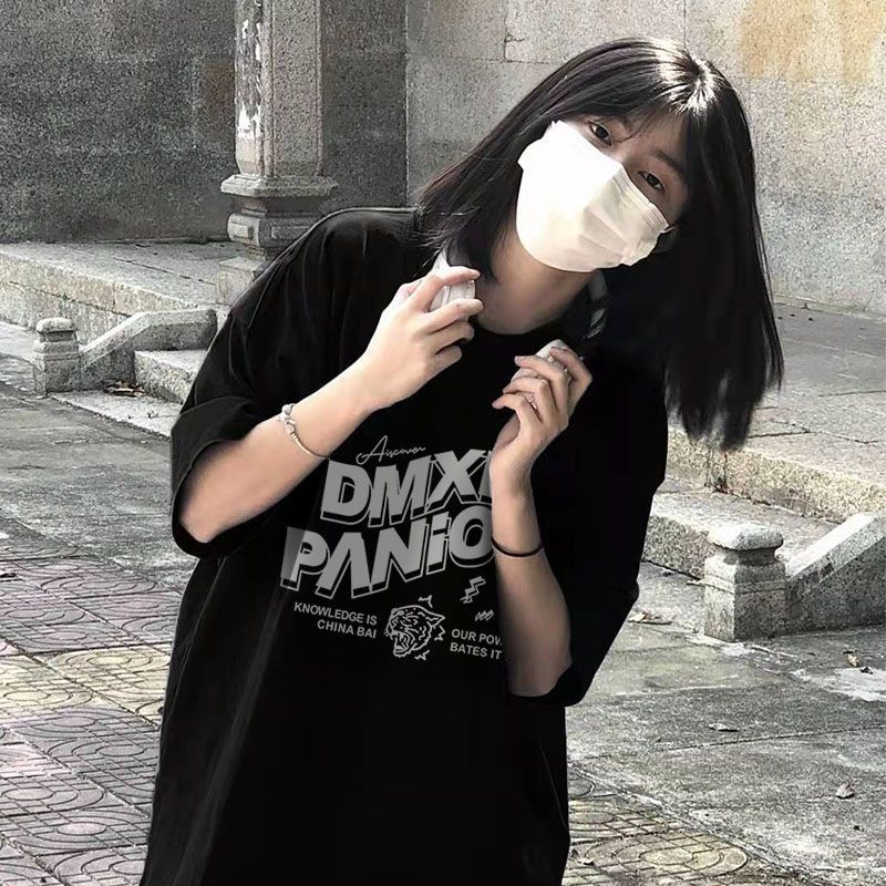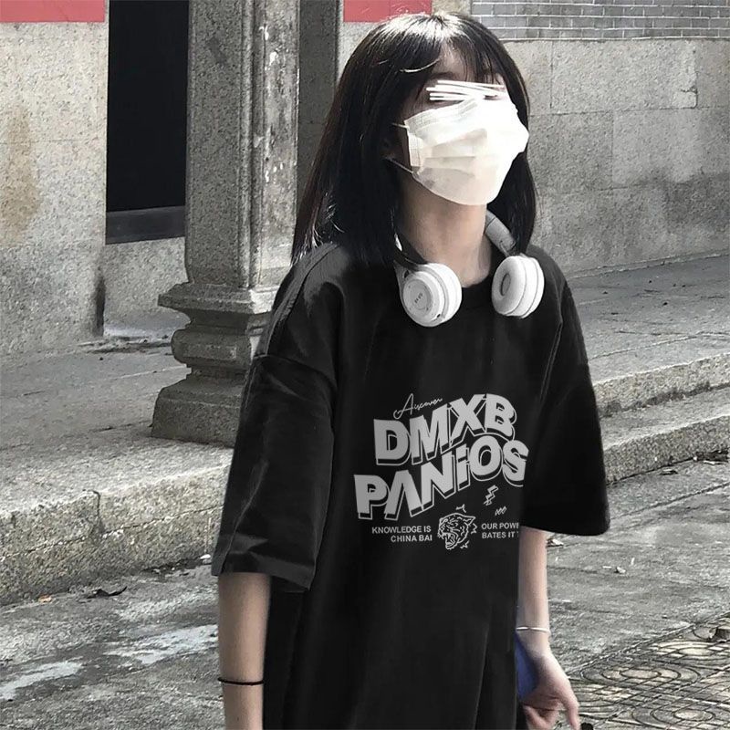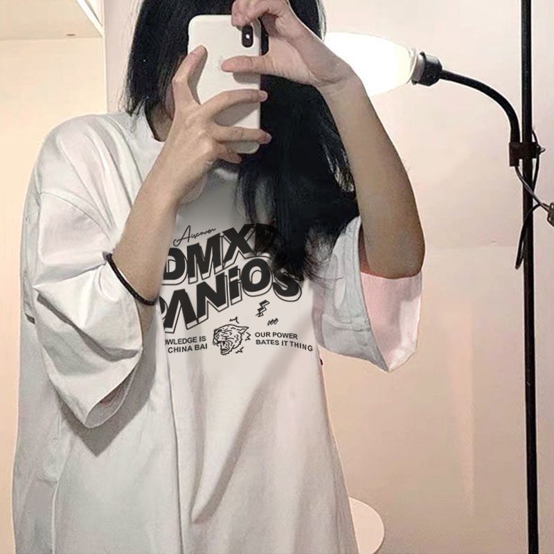 【草莓兔】短袖t恤女 圓領 ins風韓版上衣 夏季短袖 寬鬆 日系簡約 情侶上衣 印花半袖上衣 潮流中長款上衣