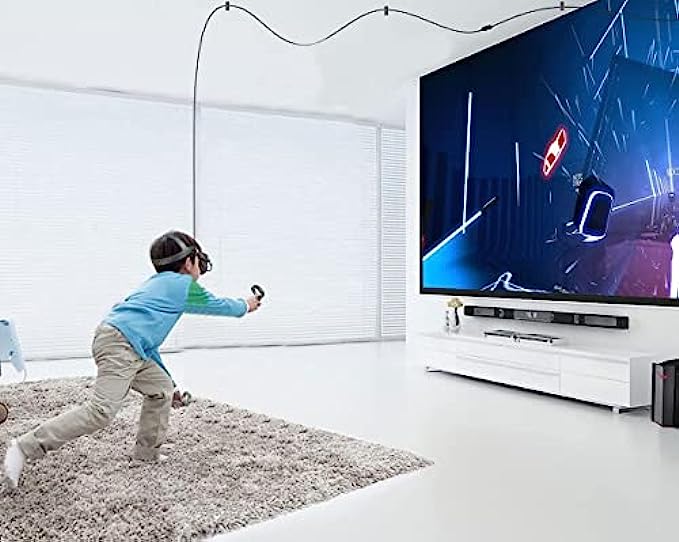 【Flexible and Comfortable Length and 90 Degree Angle】The 16.4ft charging cable gives you unrestricted freedom of movement while immersed in the VR world, bringing you a smoother gaming experience. At the same time, the USB Type C port is designed with a 90° angle, and the included cable holder is specially designed to accommodate our cables, so that you can play games without the interference of cables falling off, so as to improve your comfort.