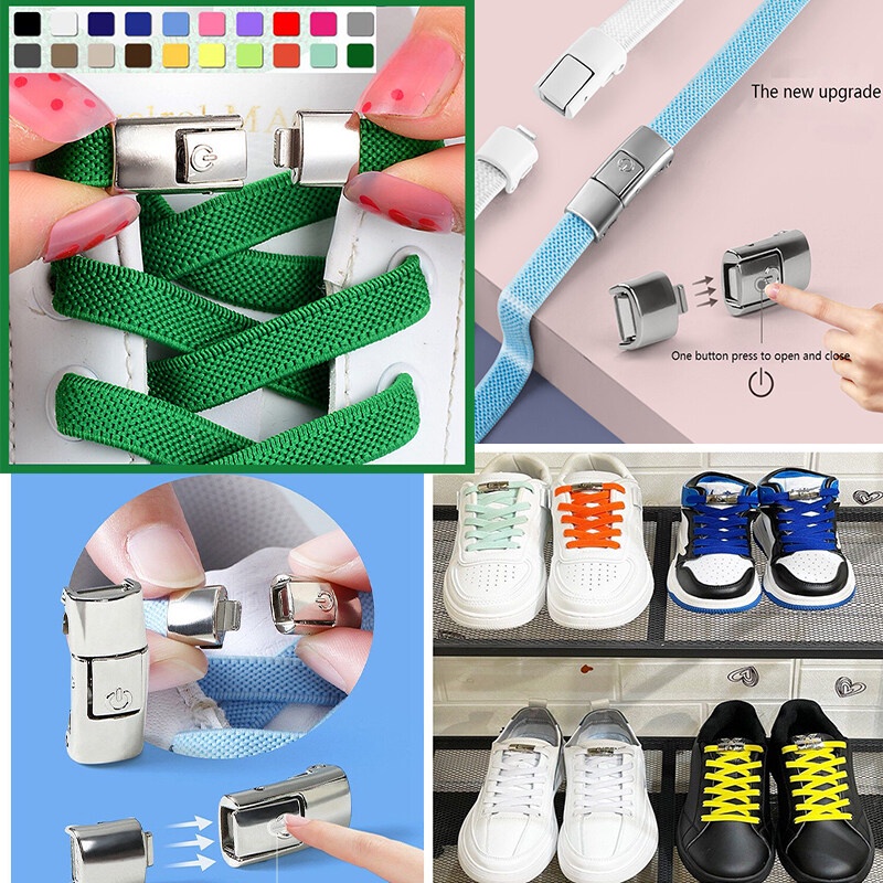 Colour:Matches my Puma Shoes Material Quality:Elastic Shoelace is elastic. Buckle is metal. Happy with my purchase. Easy to fix up. No more loose shoelaces… yeah!
