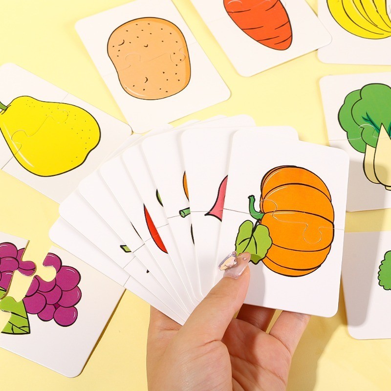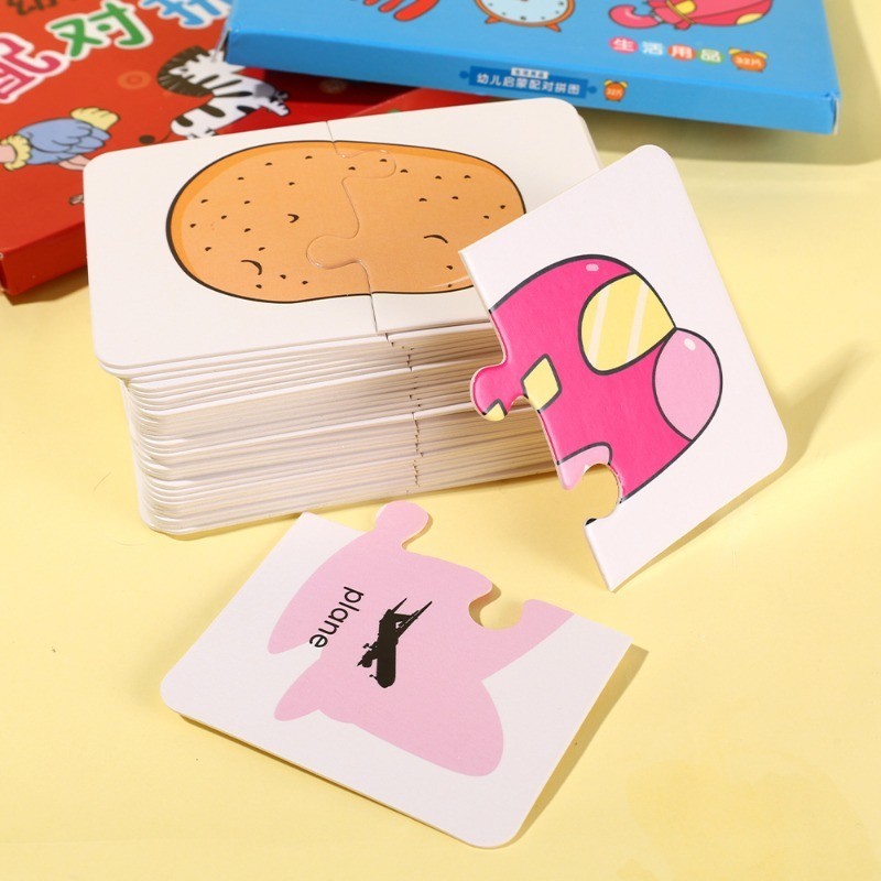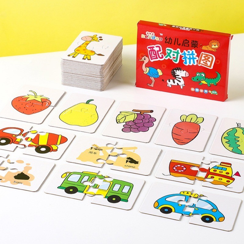 32Pcs Toddler Matching Card - Early Montessori Education Puzzle Toy ​- Cartoon Animal Fruit Truck Pattern ​- Graph Card Matching Game - Children Shape Cognitive Training Jigsaw