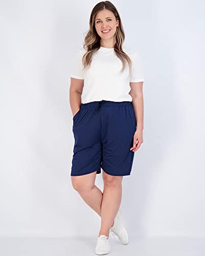 90% Polyester, 10% Spandex Imported Drawstring closure Machine Wash Available In Plus Size Ligtweight & Quick Dry Fabric: The womens 7 Inch long Athletic shorts crafted of lightweight, quick dry, breathable and water-resistant fabric helps to repel light moisture to keep you cool and fresh all day. Elastic Waistband: The womens 7 inch inseam knee length dry fit shorts have a 360-degree elastic waist with adjustable drawstring to prevent pressure marks on the tummy and offers a custom fit during hiking. Multi Pockets: 2 side pockets are deep enough to store your cellphone, keys, wallets and other essentials without falling out when golf or athletic.