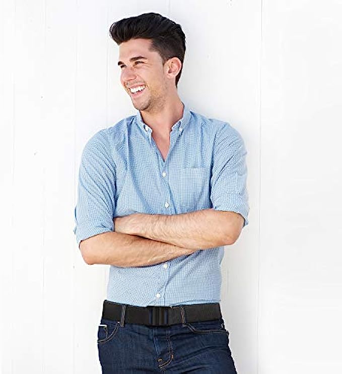 Elastic Snap closure Wet Wipe Clean What you get: you will receive the super easy latching and snapping adjustable stretch belts, the elastic material make the belts lightweight and breathable to wear, snap the plastic clasp to secure and press it to unbuckle, feel like wearing nothing and invisible Flat buckle: the plastic buckle is no show under your outfit or on your waist, does not like the bulky buckle, it provides a slimming appearance for you when keeping clasp tightly, no use of metal is also time-saving for security check Adjustable size: the invisible belt is approx. 100 x 3.5 cm/ 39.37 x 1.38 inches, fit for US size 0-16, , the buckle is 1.37 inch wide, 1.49 inch long; The elastic strap is flexible to adjust, one size fits most, holding up your pants and fit around your waist tightly Invisible design: if you have to wear a web belt but do not want the bulge part of a metal buckle, try this no show belt, flat buckle, no bulge, look smooth under clothes, provides an instant slimming effect, easy to pass metal detector Diverse occasions: the invisible waist belt is suitable for daily wear, travel, outdoor, work, school, to match jeans, dress, T-shirts, also good for those who are pregnant or losing weight, much more comfortable to wear than those hole belts