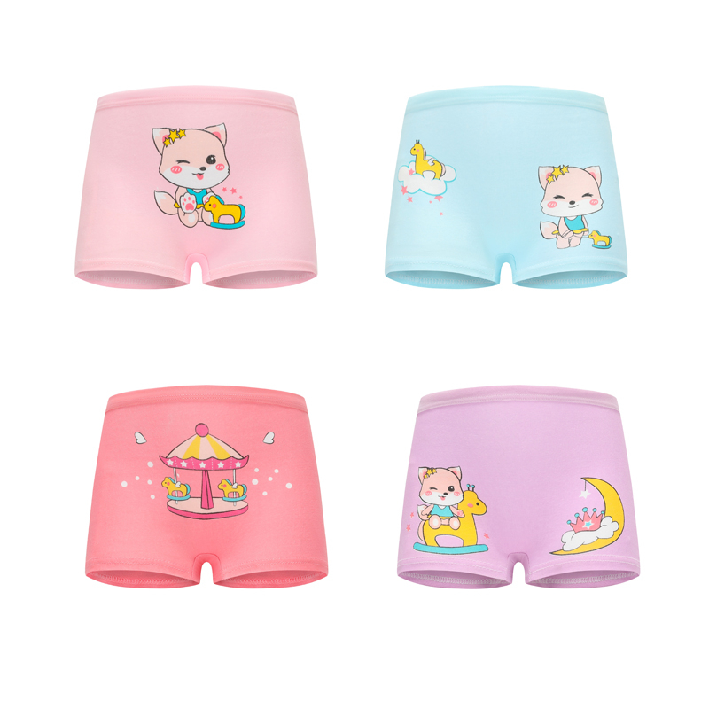 4 PCS In 1 READY STOCK Various Designs Kids Panties Breathable Girl’s Boxer Cartoon Solid Cotton Briefs