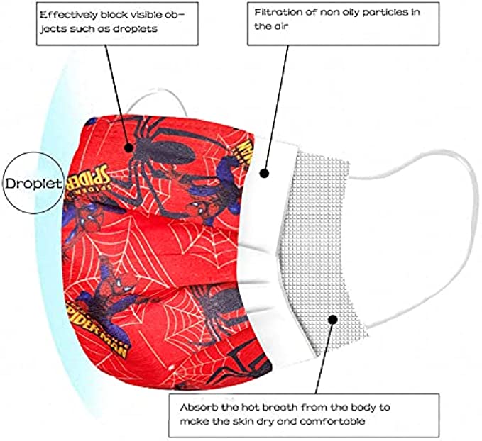 Elastic Comfortable material:50pcs kids disposable face masks, 3 layers with skin-friendly material,hese face masks for kids are made of non-woven fabric and melt-blown fabric. non-irritating,soft and cozy, breathable fabric is more comfortable for little ones to wear.Keep children's faces clean when they are outside and school. One Size Fit Most Kids:The colorful face mask for kids with comfortable elastic earloop, eliminating the pressure to your ears,making it soft ,comfortable,and very effortless breathable to wear.Easy to use, covers mouth, nose and chin. Even if your children wear it for a long time, the disposable face mask can provide them with a comfortable experience. Considerate design : Our protective covers are disposable and single use. Just slip the elastic bands over your ears and conform metal nose guard to create a light seal around your face. Should not be reusable. Apply new one every 2 - 4 hours for best protection to ensure moisture from breathe doesn’t dampen it. Ideal Kids Wear: The kids face masks is suitable for school, park, playground, outdoors, cycling, home decorating, daily use etc.The package including 50pcs Printed cute cartoon pattern face masks. Kids disposable masks with 5 different printed cute cartoon patterns.Wearing a mask doesn't have to be boring! Add some energy and fun by wearing a cute and playful design. Guarantee: Please feel free to contact us if you have any questions about our kids face mask, We will do our best to solve your problem to ensure you get the best shopping experience. Department name: unisex-child