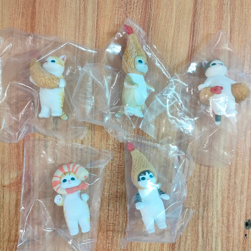 5Pcs/Set Mofusand Kawaii Tempura Fried Shrimp Shark Cat Action Figure Toy PVC Hamburg Cat Model Doll Figurines Home Decoration Fans Children Gifts