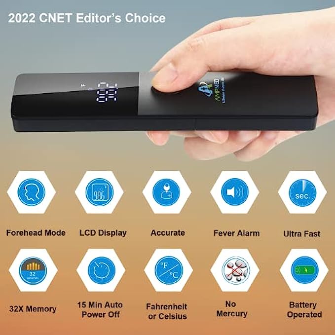 GREAT VALUE: Features on this touchless thermometer include memory storage capacity for previous 32 readings; Celsius or Fahrenheit settings; Able to be read at night; auto-off; energy saving capabilities