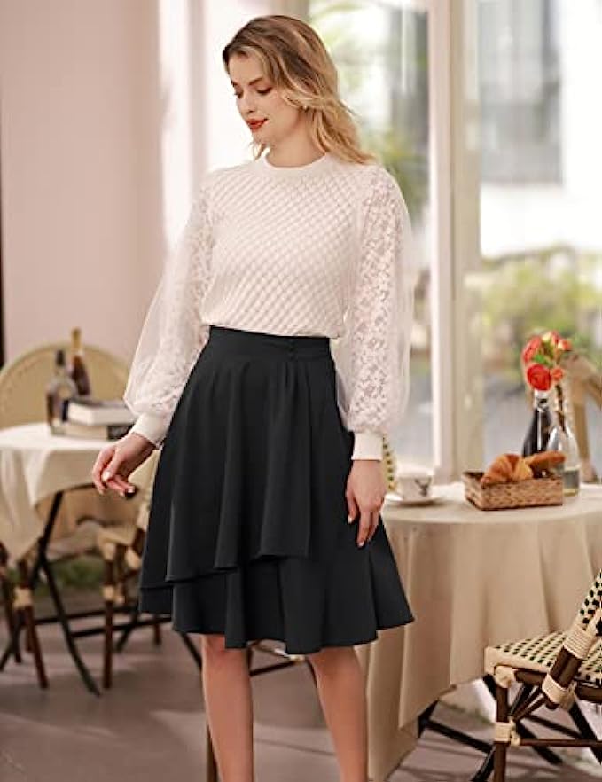 95% Polyester, 5% Spandex Imported Hand Wash Only Feature: Double-layer ruffle hem, Flowy A-line midi skirt for women, Knee-length, High-waisted wrap skirt, Pockets,Decorative buttons at the waist, is great for both dressy or casual look, can be dressed up with heels or down with flats High Waisted Long Skirt: you will love our wrap midi skirt when you wear it, everyone wants a fashionable casual skirt for women, it is comfy and makes you look elegant and fashion Occasion: Simple retro solid-colored design, that will never be out of date. The high waisted skirt is suitable for dates, work, office, school, travel, party, cocktail, beach, vacations, Halloween, and daily casual. Perfect for spring, summer, and autumn, easy to match all kinds of tops Size Guide: Small=US 4-6, Medium=US 8-10, Large=US 12-14, X-Large=US 16-18, XX-Large=US 20-22;Please choose your size according to our size chart image Garment Care: Machine washable, recommended with a laundry bag, do not bleach,Iron before wearing