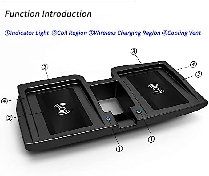 【Product Features】15w wireless fast charger,charging faster &safer, effective charging, wireless charging induction distance ≤6MM, say goodbye to the wiring harness; With dual wireless charging panels, it supports charging two mobile phones at the same time without affecting each other.