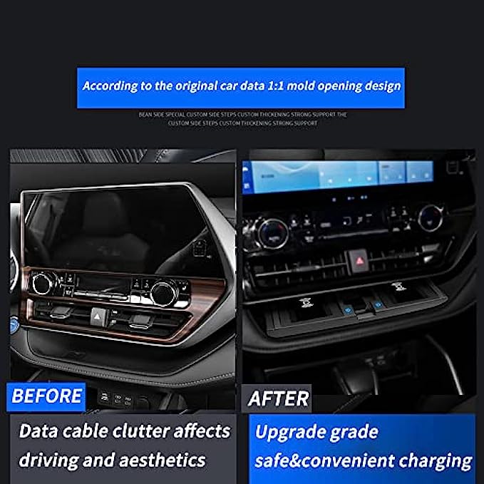 【Special Car Design】 Molded by the original car data, accurately fit the car body, it is fit for Toyota Highlander 2022 2021 2020 compatiable with almost smartphones with wireless charging function.