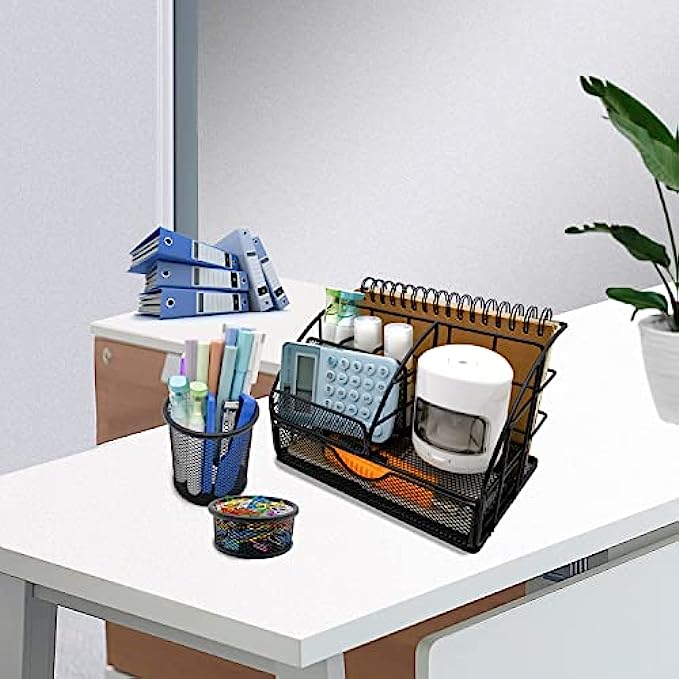 Space Saving Option for Office/Art Supplies: Desk organizers have enough storage space to accommodate your desk supplies as files, books, mails, bills, documents, envelopes, folders, pens, pencils, markers, post-its, rulers, paper clips, binder clips, business cards, and more, also good for organizing makeups and small household items; keep it organized, easily find anything you need.