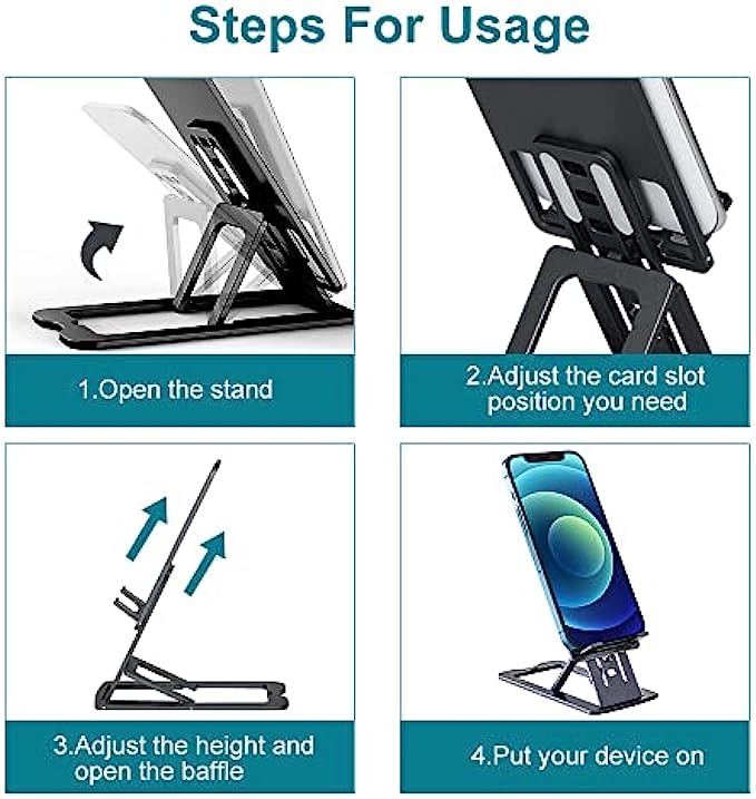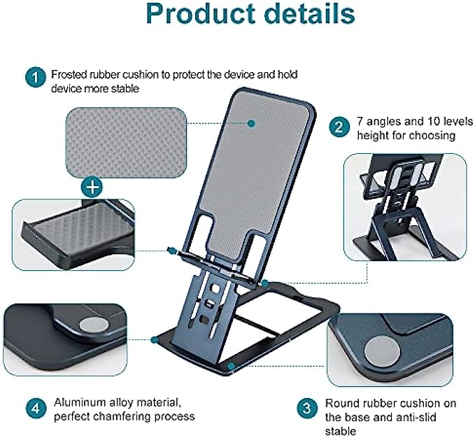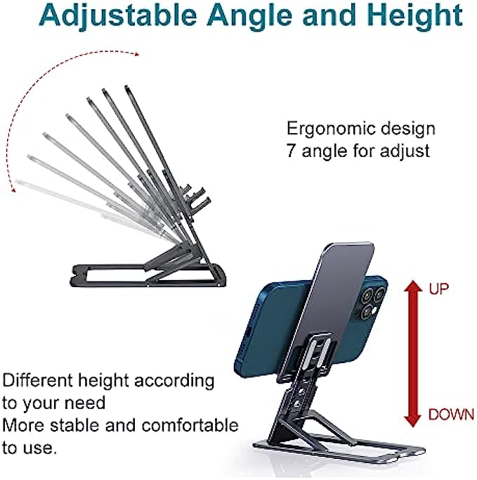 ?[Height and Angle Adjustable] The adjustable phone stand is ergonomically designed. Ten heights and seven angles are easily adjustable, giving you the flexibility to customize the angle to find the most comfortable viewing angle. Reducing the frequency of looking down at your phone screen can help stabilize your posture and reduce stress on your neck and back.
