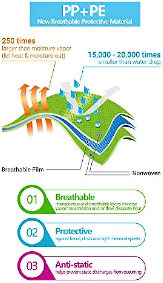 Microporous and breathable layers increase vapor transmission and air flow, dissipate heat, offer a cool and comfortable wearing experience; Anti-static coating helps prevent static discharges from occurring.