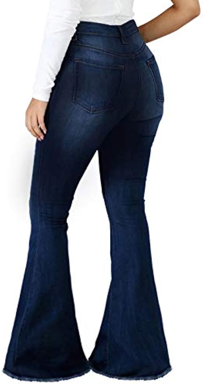 CuteCherry Bell Bottom Jeans for Women Ripped Skinny Bell Bottom Raw Hem Denim Pants