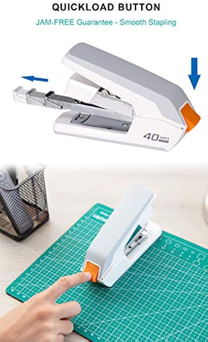 [40 Sheet Capacity] – 2x more than standard staplers, perfect for desktop use at work office, home, or in the classroom. You can use the stapler immediately out of the box with 1000 1/4 inch leg standard size staples and and 500 5/16 inch leg large staples