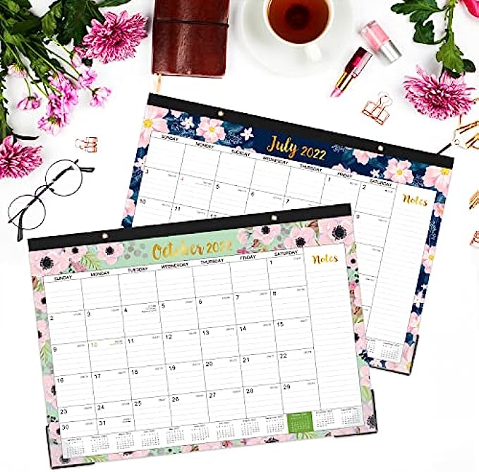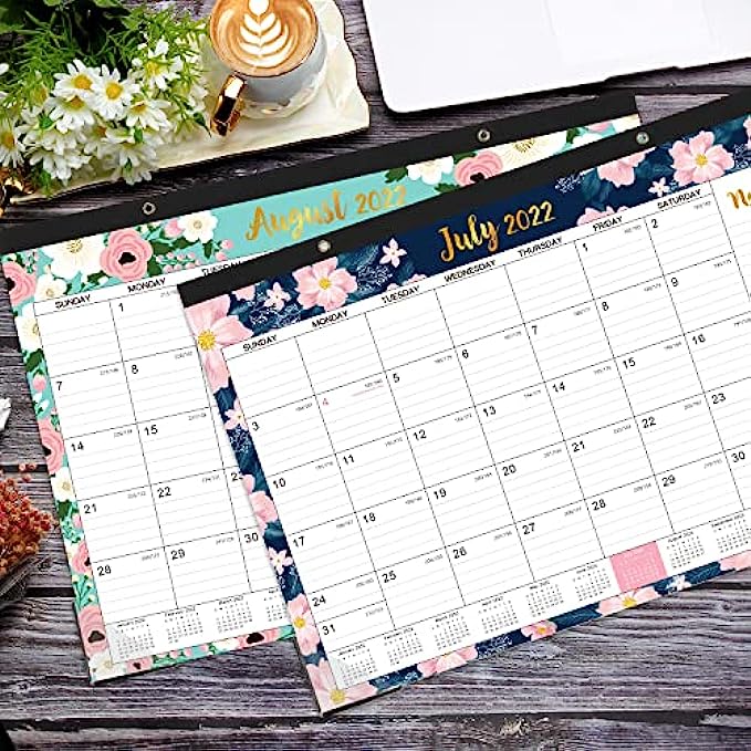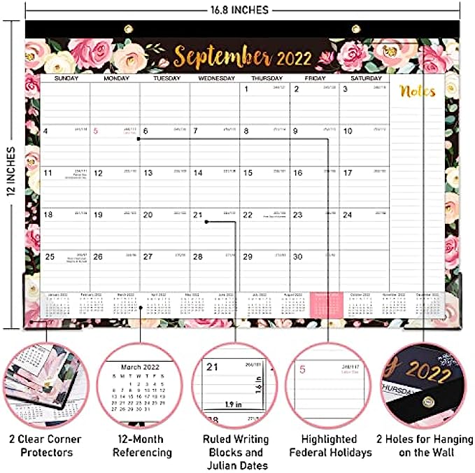 ? SUPERIOR DESIGN OF 2022-2023 DESK CALENDAR - Perforated design allows you to tear off and move to the next spread easily averting disorder. Two transparent corner protectors to keep your pages flat, and two top holes for optional hanging it on the wall.