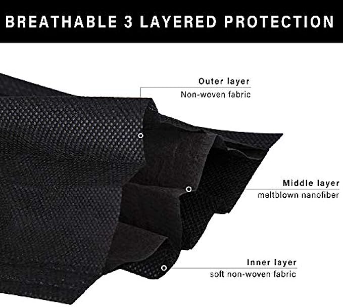 non-woven Masks made of 3 layers of high-quality non-woven fabric which is more breathable Our disposable face masks are suitable for adults and teenagers These face masks can be used for daily protection, but should not be used in surgical or high risk situations 100 pieces Great for dust-free workshops, schools, catering services, food processing, environmental cleaning, production workshop, public occasions, etc.