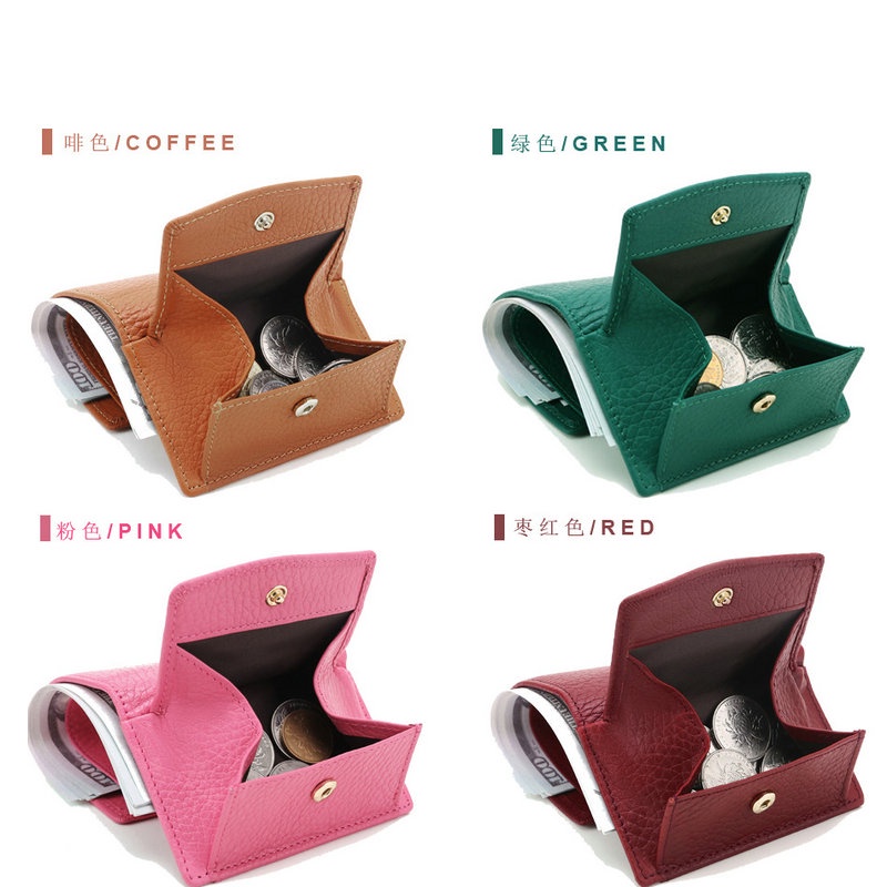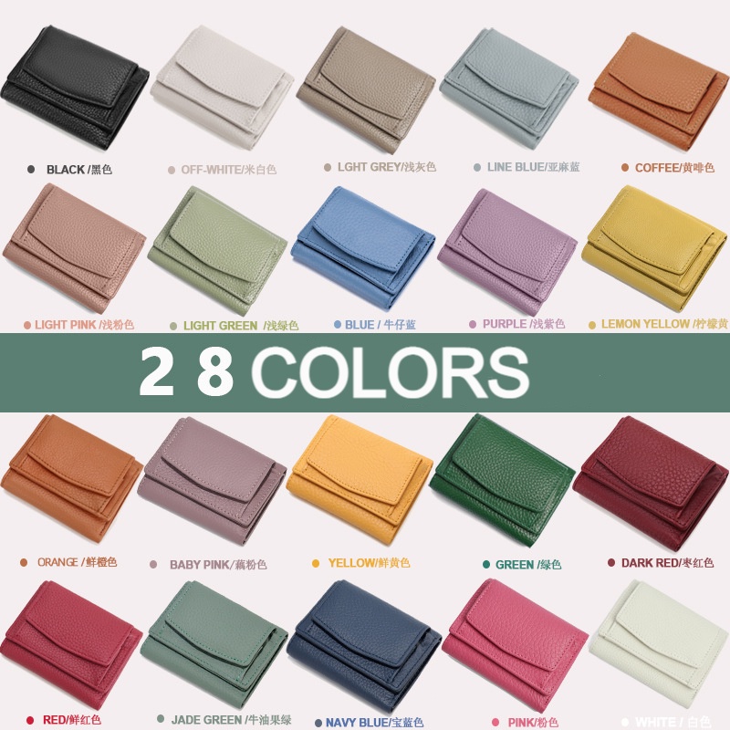 GENODERN RFID Blocking Women's Wallet Genuine Leather Lady Purses Short Japanese-Style Multiple Card Slots Coin Purse Tri-Fold Wallet