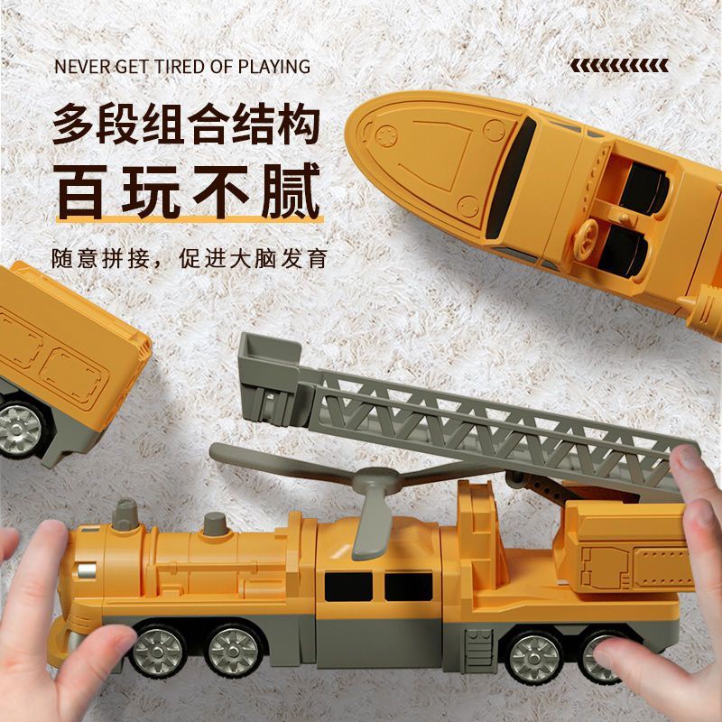 Get Gifts?Children's Magnetic Puzzle Building Blocks Fire Car3-6Years Old5Boy's Deformation Robot Toy Engineering Vehicl