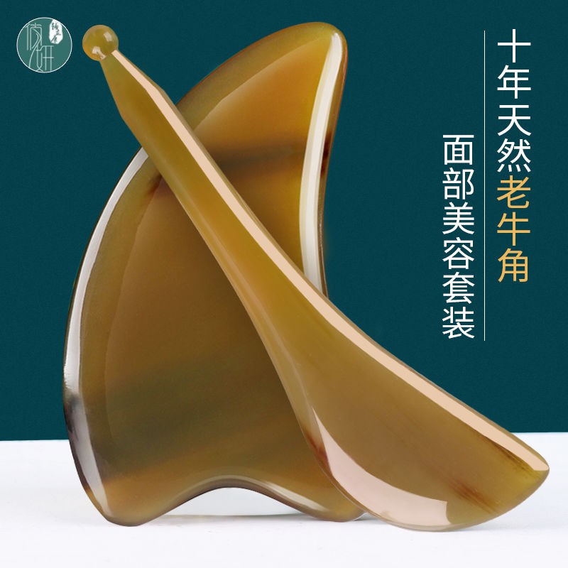 Gua sha天然牛角刮痧板面部拨筋棒全身经络通用