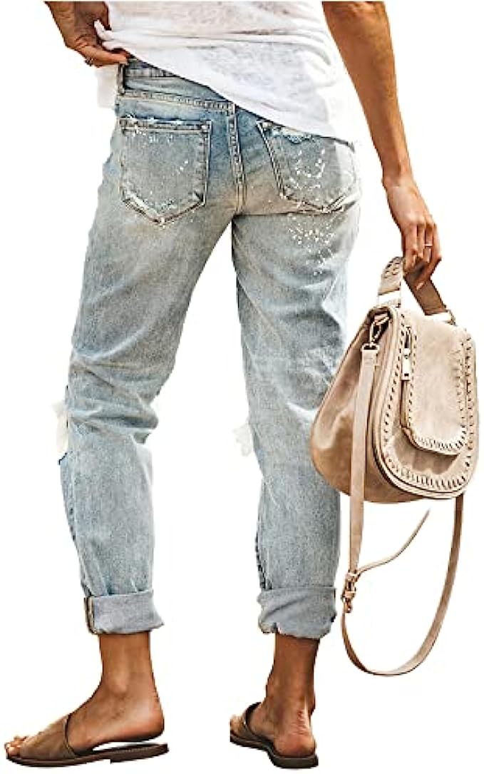 HETIPR Women's Ripped Boyfriend Jeans Mid Rise Loose Fit Distressed Stretchy Denim Pants