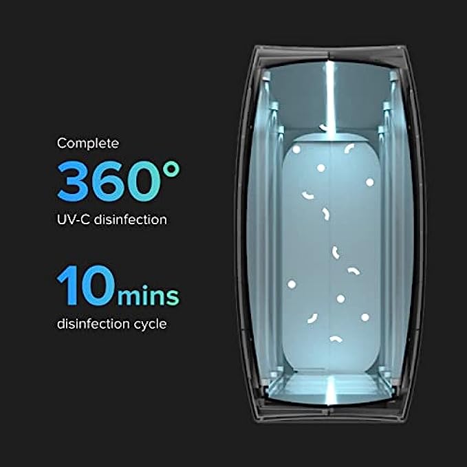 UV Sanitizer Box; Get the same disinfecting power as the original PhoneSoap phone sanitizer, but more room for large items like tablets, game station controllers, remote controls, and more gadgets. With automatic and manual modes, this UV-C sanitizer allows you to stop and start the microbe-taming as you see fit. 360-Degree Disinfection; This powerful UV light sanitizer box disinfects without sprays, solvents, or chemical cleaning agents. With bulbs on both the top and bottom, our UV sterilizer and phone cleaner device achieves 360-degree disinfection, reaching tiny crevices that sprays and wipes cannot. Easy to Use; Simply plug the HomeSoap into power with provided cord, place your object of choice inside, close door, and remove disinfected object after 10 minutes. Go Big and Tell Germs to Go; This large capacity UV phone sanitizer boasts a sleek, simple design and can fit larger items than the original PhoneSoap. With more space, you can disinfect your tablets, laptops, phones, toys, pacifiers, baby bottles, keys, wallets, and so much more. Internal dimensions: 13.18 x 3.66 x 9.24 in. Best Reviewed, Most Trusted Brand; PhoneSoap made germicidal UV-C light available to consumers as best-in-class disinfection products paired with stylish design. We help people live better by defeating microbes the easy way—on high-touch, germ-coated phones to the air we breathe.