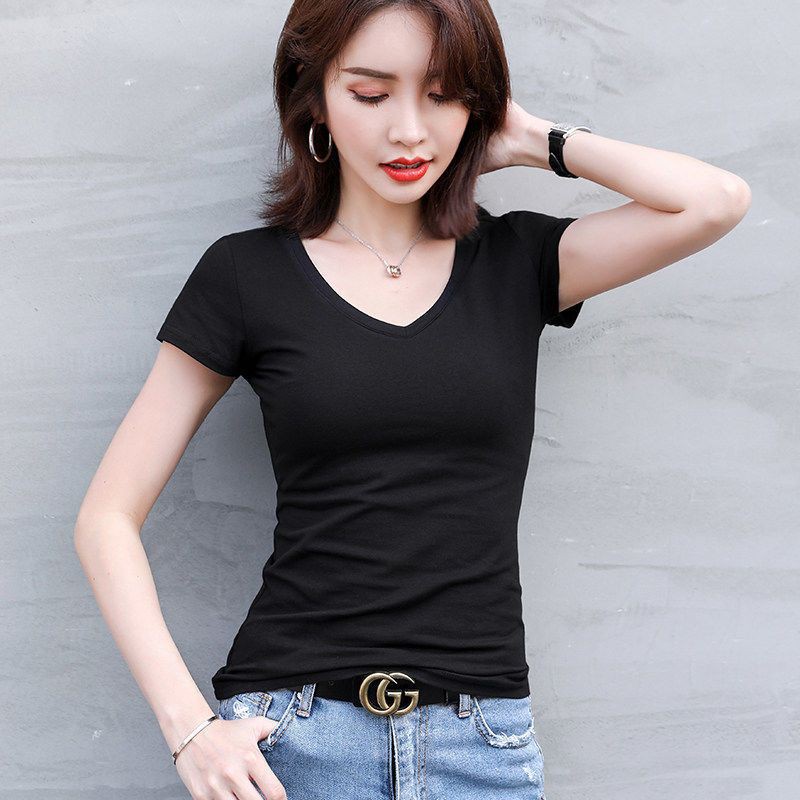 Korean version of short-sleeved t-shirt women's thin summer women's white compassionate half-sleeved solid color bottoming shirt