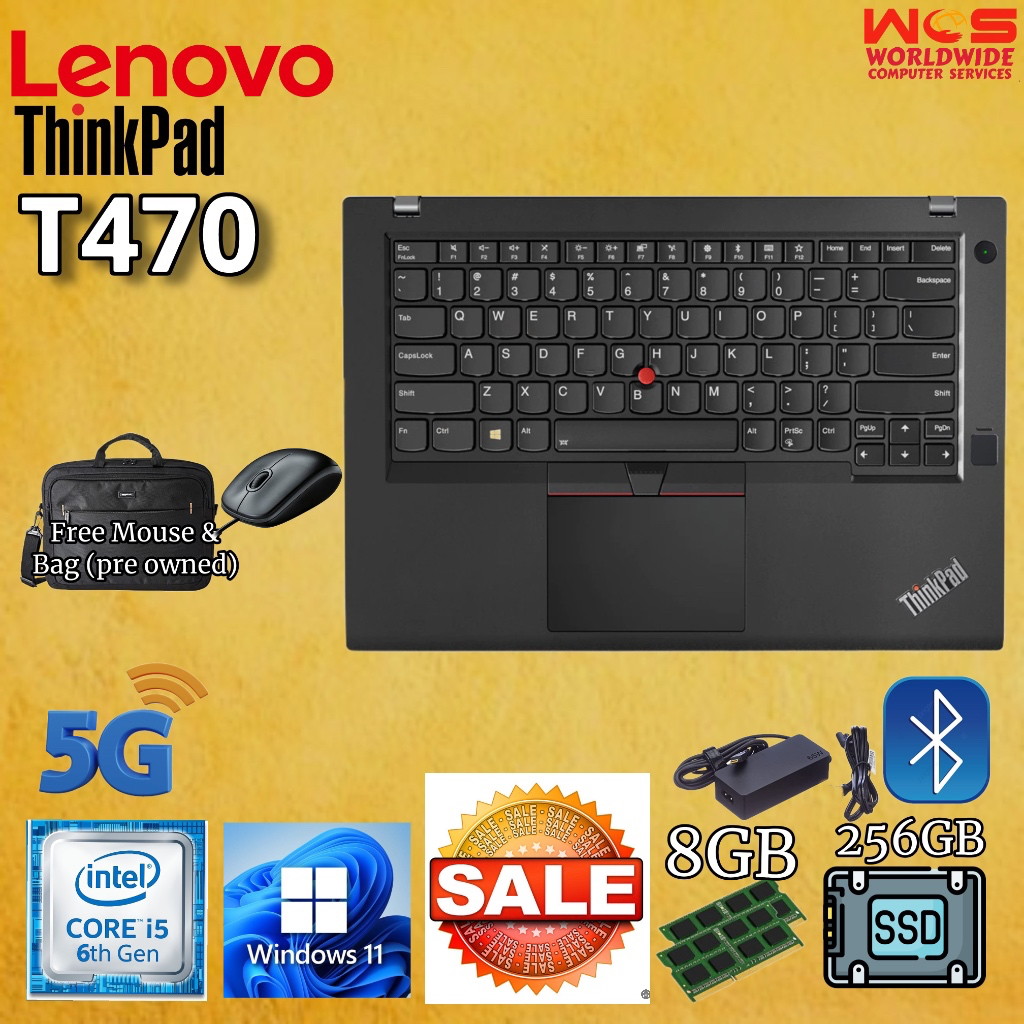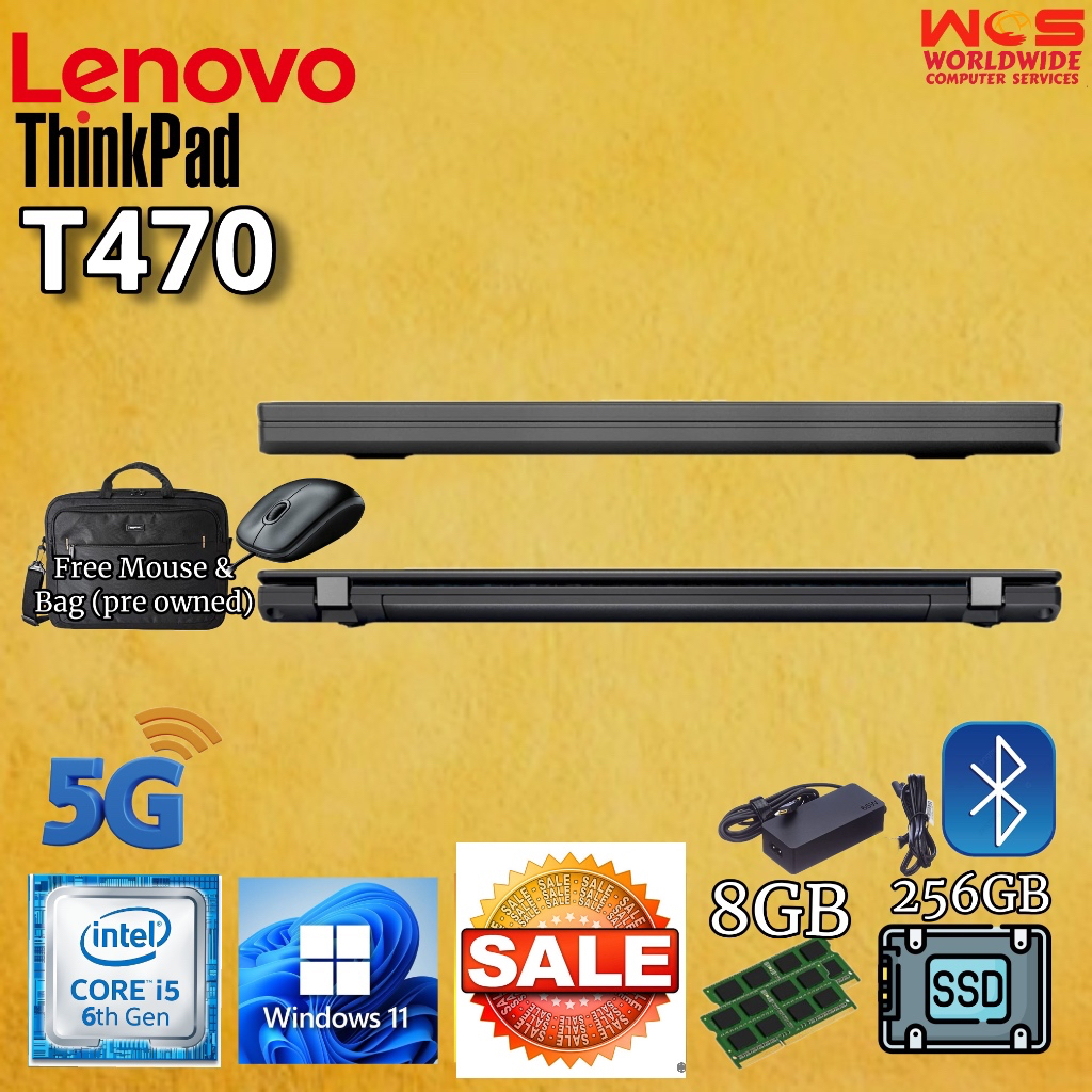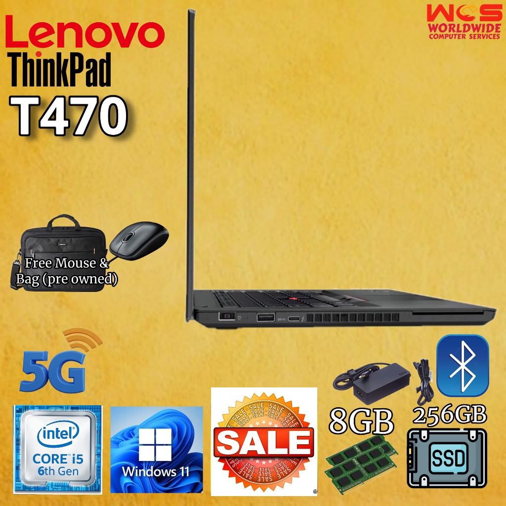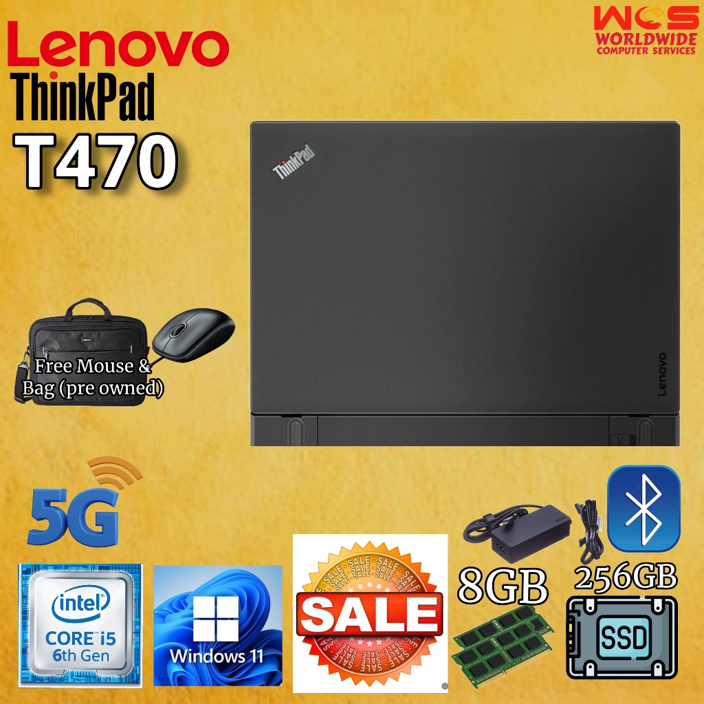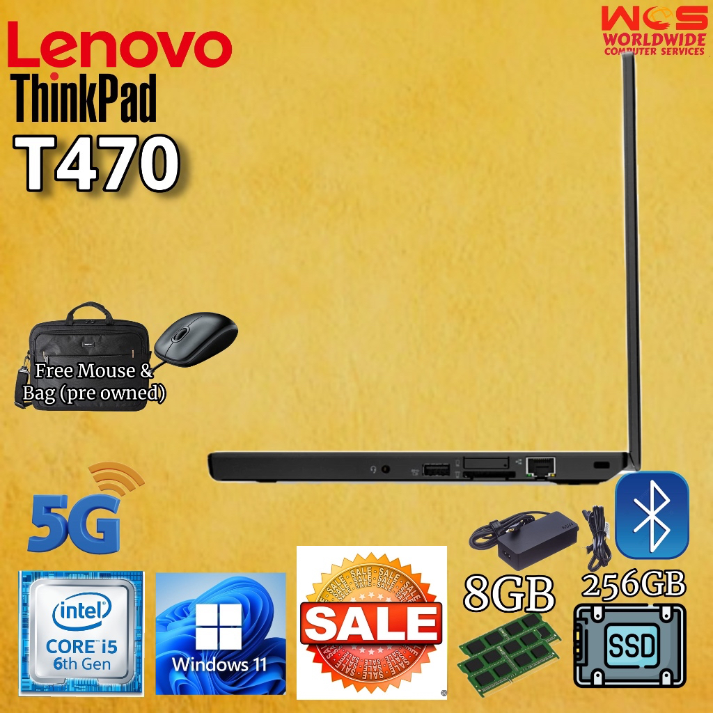 LENOVO T470 ThinkPad 14" HD display/ Intel Core i5 6th Gen/ 8GB RAM / 256GB SSD / WIN11 PRO /MS Office (Refurbished)