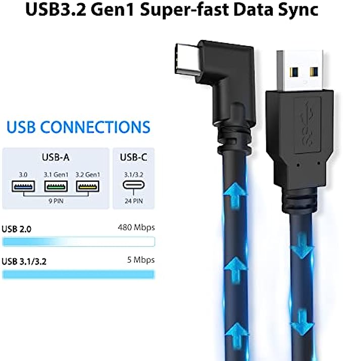 High Speed Data Transfer-Data transfer speed up to 5 Gbps, enabling it to continuously and stably connect to the Oculus Link program without lag. Please make sure to plug oculus quest 2 link cable into a USB 3.0 slot on your motherboard or GPU to ensure optimal performance.