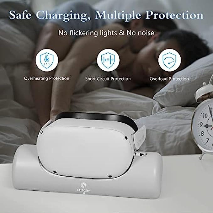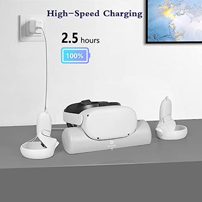 【Safe & Fast Charging】The oculus charging station supports fast charging. The quest 2 can be fully charged in 2.5 to 3 hours. The built-in smart chip has the functions of overheating protection, over voltage protection to escort the charging.
