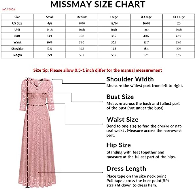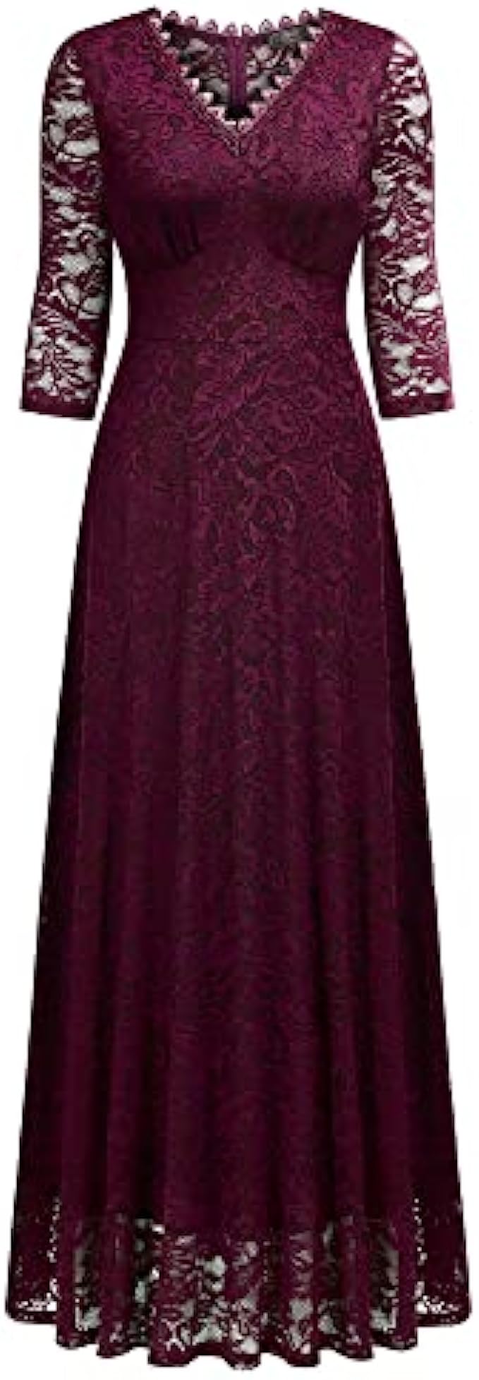 90% Nylon, 10% Elastane Imported Zipper closure Size RECOMMEND:US 4/6(Small), US 8/10(Medium), US 12/14(Large), US 16/18(X-Large), US 20 (XX-Large). This Elegant Dress is Perfectly Fit For All The Occasions: Formal Evening Prom, Wedding Party, Cocktail Club. Full Lace Overlay, Floral V-Neck, See-Through Sleeves. Vintage and Chic Style, Zipper on the Back, Retro High Waist Design, Floor Length. Care Instructions: Please Put The Dress Into A Laundry Bag For Wash It With Low Temperature and Iron Carefully in Low Temperature Too.