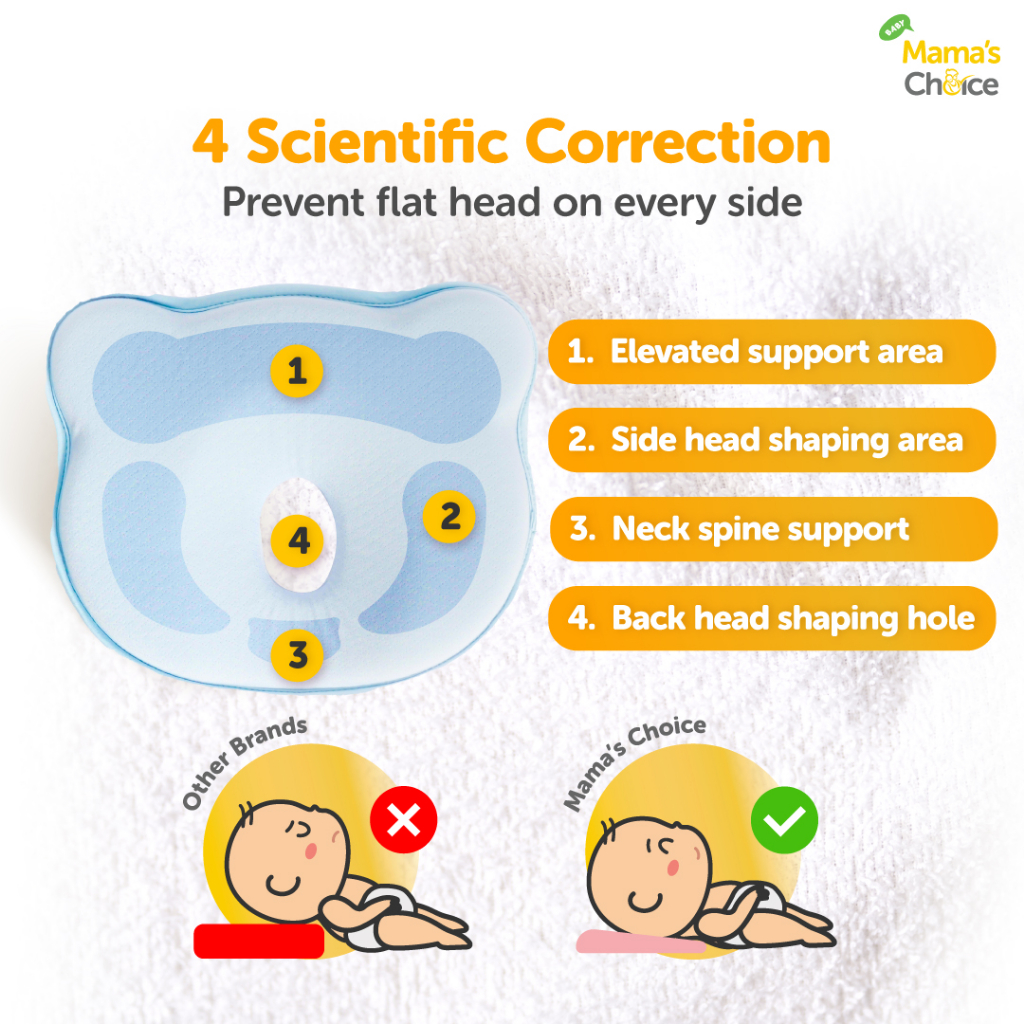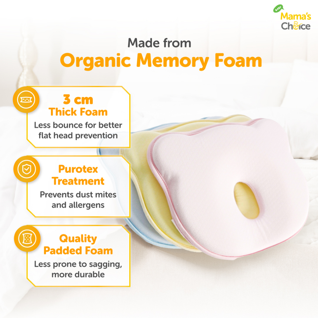 Mama's Choice Flat Head Prevention Pillow (Head shaping organic memory foam baby and infant pillow)
