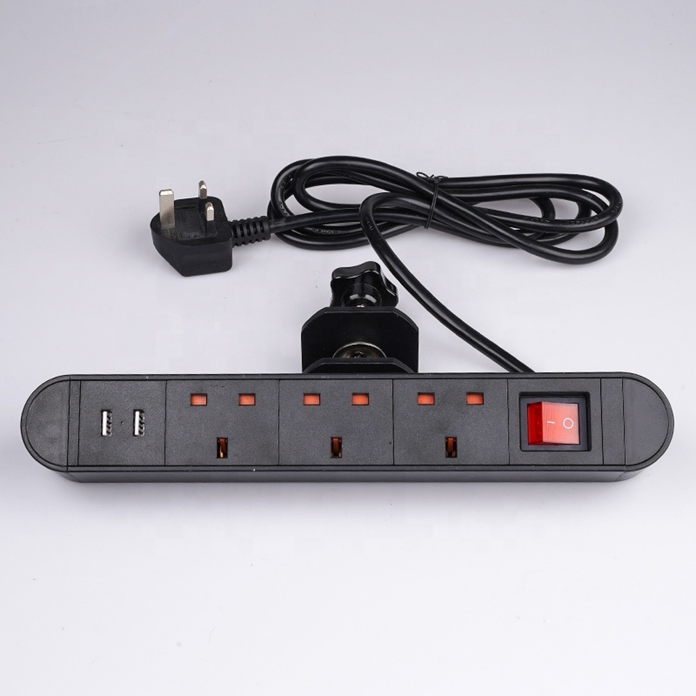 Melery Tablet Socket Power Strip UK 3 Ways Electrical Plugs Outlets Sockets with USB Port Clamp on Conference Table Home Office Desk for Singapore Malaysia