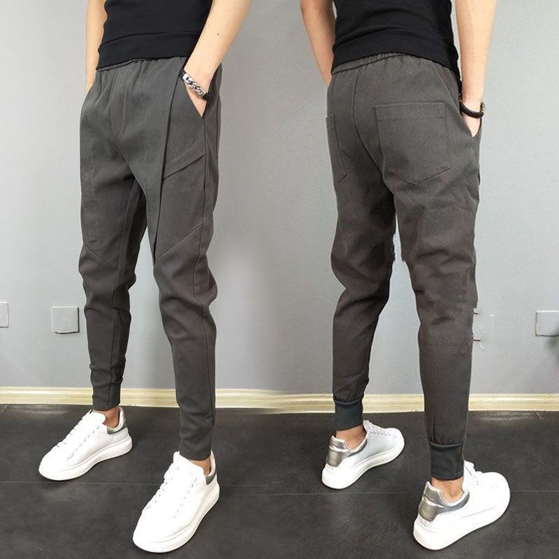 Men's Korean Style Solid Color Jogging Pant Man Slim Fit Drawstring Casual Ankle Pants