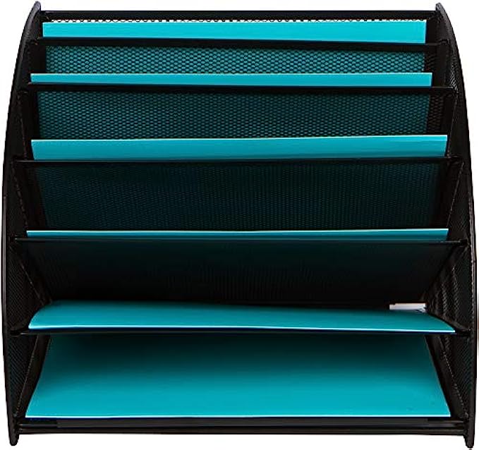 Mesh Office Organizer for Desk - Fan Shaped Desktop Organizer with 6 Compartments for Filing Paper, Bills, Letters. Desk File Organizer for Work, School, Office, Waiting Room, Classroom, and More