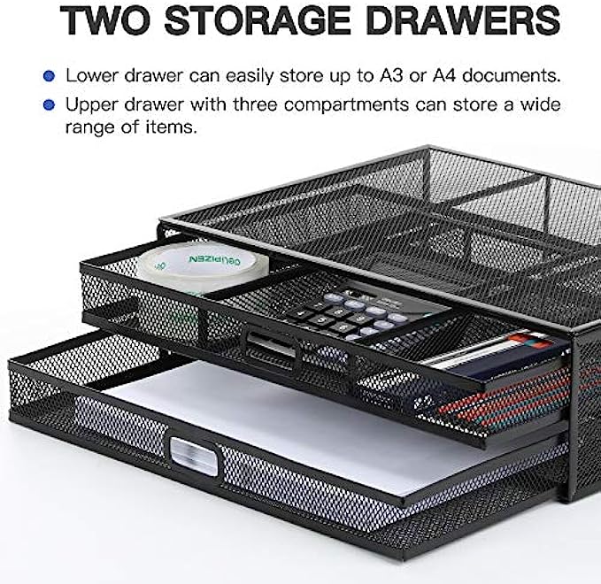 【Super Desk Organizer with 2 Drawers】- Store almost all of your small office supplies like pens, notebooks, smart phones, paper, documents etc., keeping your desk neat and tidy. A superb way to save space and decrease clutter