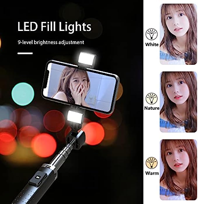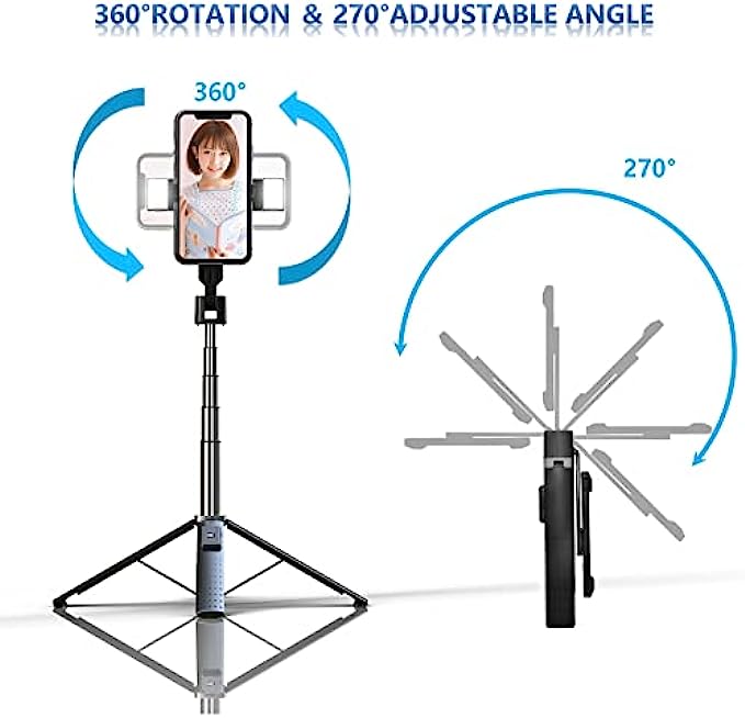 [The Latest Model In 2022]: It is an all-in-one selfie stick or tripod for iphone & Android Phones with strong stability,with Removable Bluetooth Remote, and two multi-functional fill lights,can be used as cell phone stand.