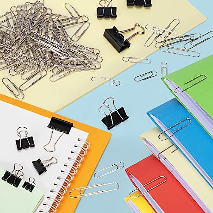 • Unlimited Application: Paper Clips Binder Clips Set can help you organize messy documents, exam papers, flyers, contracts, envelopes, posters, tickets and more in your office, school and daily life; it can also be used as a bookmark, photo clip, food clip, daily DIY, compass, hook to hang headphones and mask, etc. Perfect for schools, offices, classrooms, home and personal use.