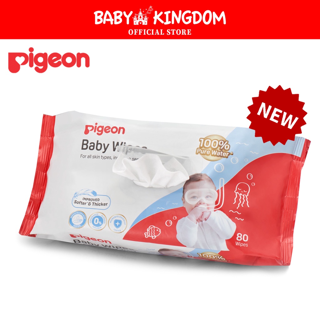 Pigeon Baby Wet Wipes 100% Pure Water 80pcs - Baby Kingdom