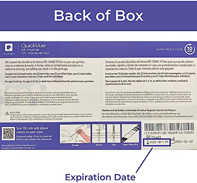 Home COVID-19 test is quick, simple and designed for self-collected nasal swabs, ages 14 or older; Ages 2+ can be tested if adult collects sample; straightforward results with pink or blue line on test strip