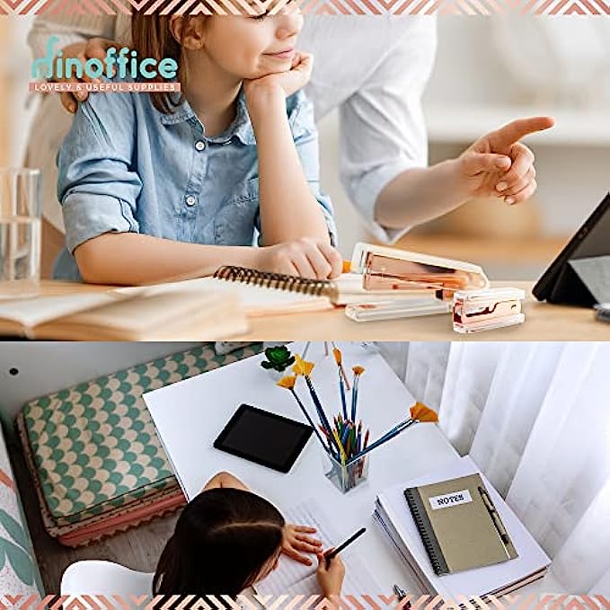 Rose Gold Office Supplies and Accessories - Cute Desk Pink for Women Acrylic Pen Holder Clear Organizer Tape Dispenser Stapler Pencil Holders Organizers Aesthetic Marker Staples Supply Girl Boss Set