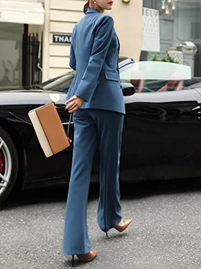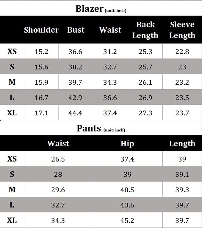 Polyester, spandex Imported Button closure Machine Wash ᴥFabric:Made of 80% polyester & 2% spandex & others,fabric blended with spandex for stretch and comfort. ᴥBlazers: Patchwork notched lapel,thick shoulder pads.Two buttons closure, and one detachable adjuatable belt to better fit different bodies,two practical flap pockets to carry small belongings. Long sleeves,regular and neat blazer hem. ᴥPants: Flared leg pants,stick button with zipper closure,belt loop design,functional slant pockets.
