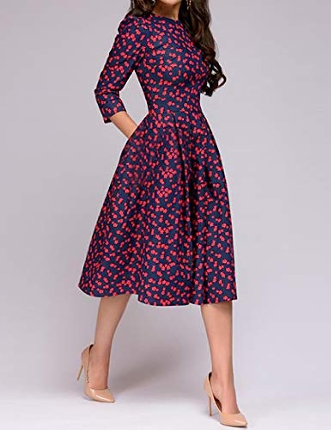 98% Polyester, 2% Spandex Imported Zipper closure Material:Polyester Features:Round Neck,Back Hidden Zipper Closure,Three Quarter Sleeve,Midi Knee Length,Floral Patchwork Dress. Perfect Wedding Guest Dress for Autumn,Winter and Early Spring Seasons. Occasion:Cocktail Party,Banquet,Wedding,Dating,Evening Dinner,Family Gathering,Daily Wear. ATTENTIONS:Before order,please carefully check the Size Chart we provided in the pictures(Not Amazon size chart).