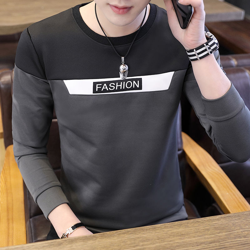 T-shirt men's color matching Sweatshirt slim t-shirt men's Long Sleeve Top Black Red