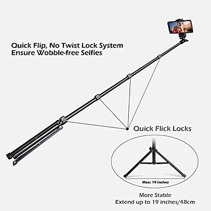 Extra Long For More Possibility - Extendable From 17.0 Inches To 60.0 Inches (Longer Than Average), Combined With 180° Neck Rotation And 360° Head Rotation To Find Your Best And Beautiful Shooting Angle, You Can Now Cram In More People Or Background To Take The Most Satisfying Selfies And Capture Awesome Selfies Or Other Photos From Formerly Impossible Angles